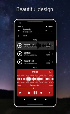 Poza nagrywaniem, **AudioRecorder** oferuje kompleksowy zestaw narzędzi do zarządzania Twoimi plikami audio. Łatwo odtwarzaj swoje nagrania, nawet w tle, przeglądaj wizualizację fali dźwiękowej, zmieniaj nazwy i udostępniaj ulubione pliki z poziomu aplikacji. Masz również możliwość importowania istniejących plików audio, tworzenia listy zakładek dla najważniejszych pozycji oraz wygodnego zarządzania całą kolekcją. Aby uczynić korzystanie z aplikacji jeszcze przyjemniejszym, personalizuj jej wygląd za pomocą różnorodnych kolorowych motywów, tworząc doświadczenie idealnie dopasowane do Twojego stylu i preferencji.