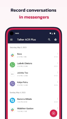 Talker ACR Plus oferuje pełną elastyczność: decyduj, czy chcesz nagrywać konwersacje automatycznie, czy wolisz włączyć rejestrację w odpowiednim momencie. Masz możliwość wykluczenia wybranych kontaktów z nagrywania, zapewniając dyskrecję tam, gdzie jest to potrzebne. Aplikacja rozszerza swoje możliwości daleko poza standardowe połączenia, umożliwiając nieograniczone rejestrowanie rozmów prowadzonych przez WhatsApp, Facebook Messenger Lite, Signal, Viber, TextNow, Skype Lite, Slack, LINE, KAKAO, Botim, Bip, Zoom, Zalo, IMO i wiele innych popularnych komunikatorów. Wszystkie zarejestrowane materiały są łatwo dostępne w aplikacji, gdzie możesz je odsłuchać, oznaczyć jako ważne dla szybkiego dostępu, a nawet zainicjować nowe połączenie bezpośrednio z poziomu listy kontaktów. Dodatkowo, Talker ACR Plus pozwala na swobodne tworzenie notatek głosowych.