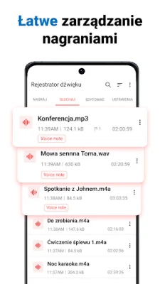 Jednak moc Dyktafon - VI Aplikacja do dyktafonu, dyktafonu i notatek głosowych nie kończy się na samym nagrywaniu. Po utrwaleniu dźwięku, aplikacja staje się Twoim osobistym centrum obróbki audio. Intuicyjny edytor pozwala na precyzyjne wycinanie, przycinanie i łączenie fragmentów, kształtując materiał według Twoich potrzeb. Dodawaj znaczniki i tagi, aby błyskawicznie odnaleźć kluczowe momenty i uporządkować swoją bibliotekę. Wbudowany odtwarzacz oferuje pełną kontrolę nad głośnością i tempem odtwarzania, idealnie do transkrypcji czy szczegółowej analizy. Steruj nagrywaniem z dowolnego miejsca, dzięki paskowi powiadomień, co zapewnia maksymalną elastyczność i wygodę.