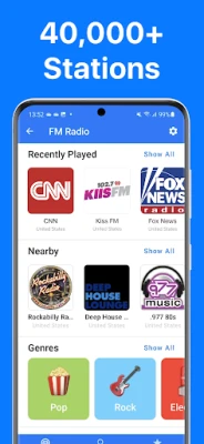FM Radio oferuje dostęp do ponad 40 000 stacji radiowych z całego świata. Odkrywaj muzykę, przeglądaj stacje według gatunków i krajów. Prosta obsługa, ulubione, historia i informacje o utworach w jednej intuicyjnej aplikacji.
