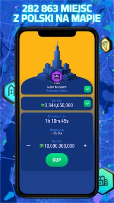Get Rent to innowacyjna polska gra typu tycoon, która przenosi rozgrywkę do świata rzeczywistego. Kupuj, sprzedawaj i ulepszaj prawdziwe budynki, od znanych zabytków po lokalne biznesy, wykorzystując mapę Polski i świata. Zostań potentatem nieruchomości, zarządzając swoim imperium w realnym świecie.