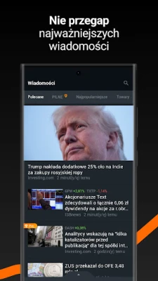 Stwórz swój spersonalizowany portfel, dodając ulubione akcje, obligacje i inne aktywa, by mieć je zawsze pod kontrolą. Zbuduj własną listę obserwowanych i monitoruj notowania najważniejszych dla Ciebie instrumentów, synchronizując wszystko bezproblemowo ze swoim kontem Investing.com na wszystkich urządzeniach. Nasz inteligentny system alertów to Twój osobisty asystent finansowy. Skonfiguruj spersonalizowane powiadomienia o zmianach cen, wydarzeniach ekonomicznych czy nowych analizach, aby nigdy nie przegapić kluczowej okazji ani nieoczekiwanej zmiany na rynku. Alerty Investing.com pomogą Ci reagować błyskawicznie i strategicznie.