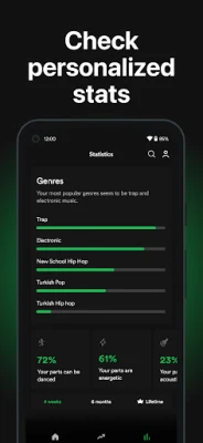 Odkryj głębię swoich muzycznych pasji dzięki must.fm dla Spotify. Ta innowacyjna aplikacja pozwala na dogłębną analizę Twojej historii słuchania na Spotify, dostarczając spersonalizowanych statystyk. Po prostu zaloguj się na swoje konto Spotify, a must.fm dla Spotify w mgnieniu oka przetworzy Twoją bibliotekę, prezentując Ci fascynujące dane o Twoich muzycznych podróżach.