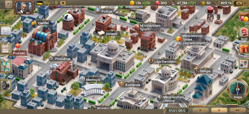 Prawdziwa potęga wykracza poza samą siłę militarną i tkwi w kompleksowym zarządzaniu państwem. Rozbudowuj swoją gospodarkę, prowadząc odwierty ropy naftowej oraz wydobywając cenne metale, takie jak żelazo czy ołów, aby wzmocnić fundamenty swojej nacji. Weź udział w złożonej dyplomacji: zawieraj pakty o nieagresji, kształtuj lukratywne umowy handlowe i otwieraj ambasady, aby wywierać wpływ na scenę międzynarodową. Kształtuj swoje społeczeństwo poprzez prawo, religię i ideologię, dbając o wewnętrzną stabilność dzięki efektywnemu nadzorowi ministerstw.