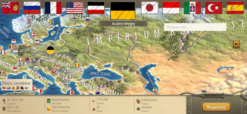 Prowadź swoje państwo do globalnej dominacji w strategicznej grze! Rozwijaj gospodarkę, zdobywaj surowce, buduj potężną armię i marynarkę. Wykorzystaj dyplomację, sojusze i handel, by przetrwać wojny, separatyzm i grabieże. Zostań przywódcą świata.