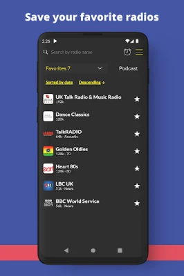 Radio UK to znacznie więcej niż tylko odtwarzacz! Słuchaj swoich ulubionych stacji, korzystając jednocześnie z innych aplikacji, a nawet gdy Twój smartfon jest w trybie uśpienia. Obudź się delikatnie przy dźwiękach ulubionej audycji dzięki funkcji alarmu lub zasypiaj spokojnie z timerem automatycznego wyłączania. Niezależnie od tego, czy podróżujesz, czy jesteś w domu, odbieraj połączenia bez przerywania słuchania, a także ciesz się brytyjskimi transmisjami radiowymi, będąc za granicą. Z łatwością zapisuj najczęściej słuchane stacje w ulubionych i odnajduj nowe za pomocą intuicyjnej wyszukiwarki lub naszych sugestii.