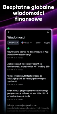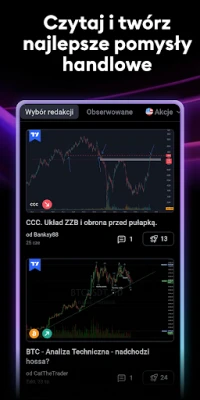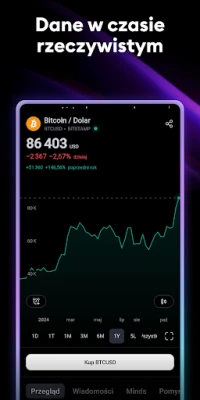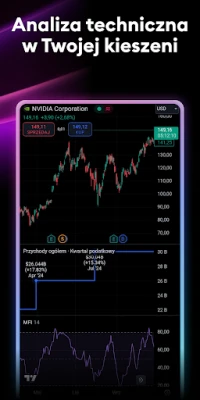 Przenieś swoją analizę na wyższy poziom dzięki zaawansowanym wykresom TradingView, które jakością dorównują platformom desktopowym. Korzystaj z ponad dziesięciu typów wizualizacji, od klasycznych liniowych po unikalne wykresy Renko i Kagi, idealne do identyfikacji długoterminowych trendów cenowych. Pełna gama narzędzi analitycznych – wskaźników, strategii, rysunków Ganna czy Fal Elliota – jest zawsze pod ręką. Twórz spersonalizowane listy obserwacyjne i ustawiaj inteligentne alerty, by nigdy nie przegapić kluczowych ruchów rynkowych, umożliwiając szybkie reakcje kupna lub sprzedaży. Wszystkie Twoje ustawienia i analizy synchronizują się automatycznie między urządzeniami, zapewniając płynność pracy.